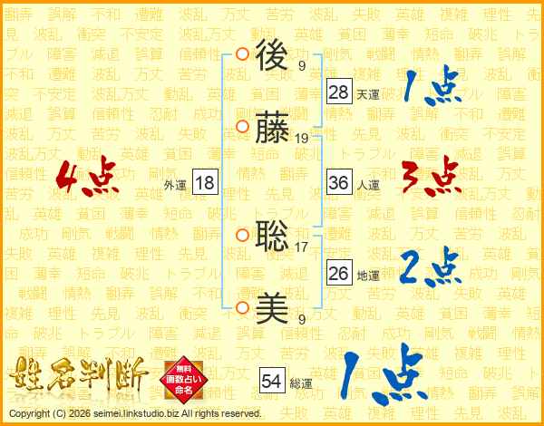 後(9画)藤(19画) 聡(17画)美(9画)