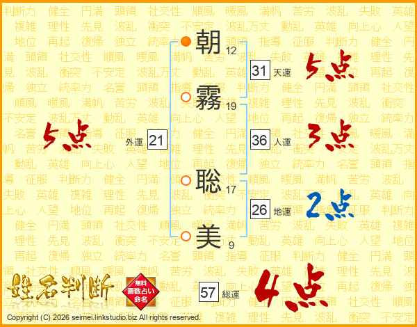 朝霧聡美さんの総運は57画の4点!