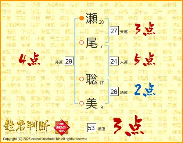 瀬尾聡美さんの地運は26画の2点!