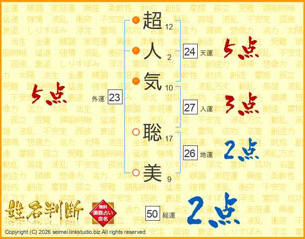 超人気聡美さんの天運は24画の5点!