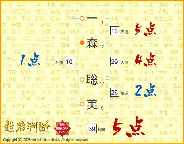一森聡美さんの総運は39画の5点!