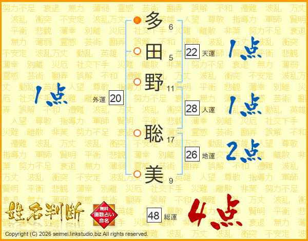 多田野聡美さんの地運は26画の2点!