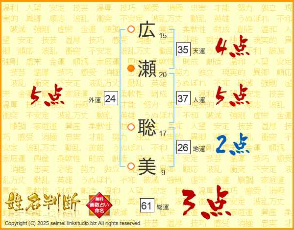 広瀬聡美さんの外運は24画の5点!