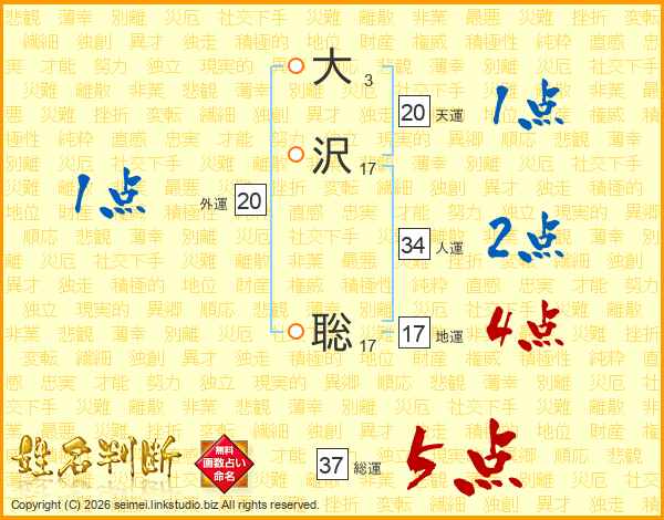 大沢聡さんの総運は37画の5点!