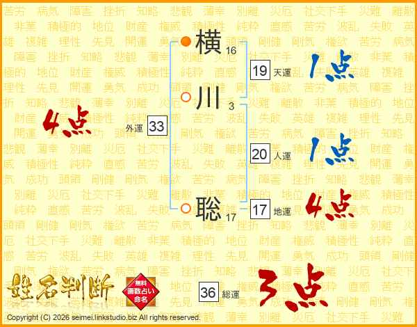 横川聡さんの総運は36画の3点