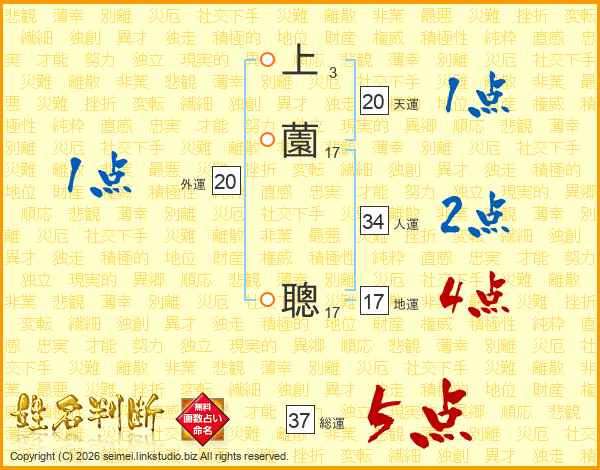 上薗聰さんの総運は37画の5点!