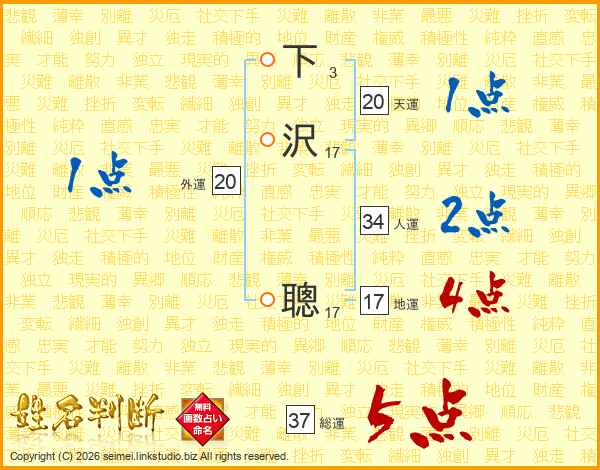 下(3画)沢(17画) 聰(17画)
