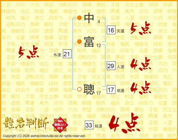 中富聰さんの総運は33画の4点!