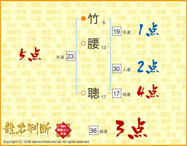 竹腰聰さんの総運は36画の3点