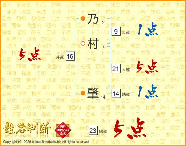 乃村肇さんの総運は23画の5点!