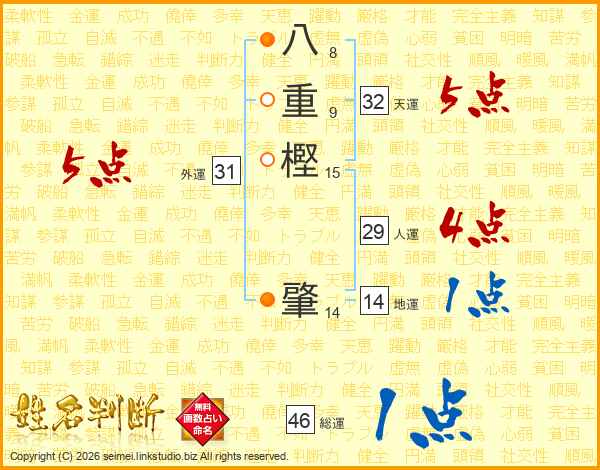 八重樫肇さんの総運は46画の1点!