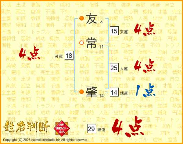 友常肇さんの総運は29画の4点!