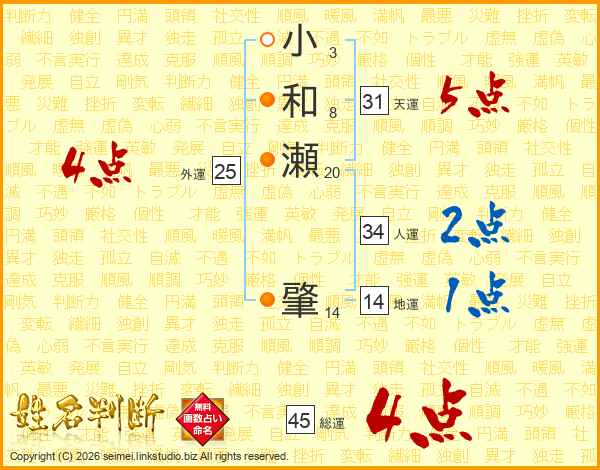 小(3画)和(8画)瀬(20画) 肇(14画)