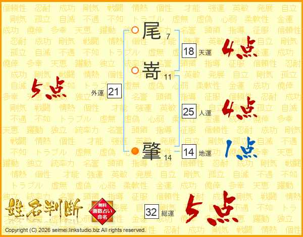 尾嵜肇さんの総運は32画の5点!