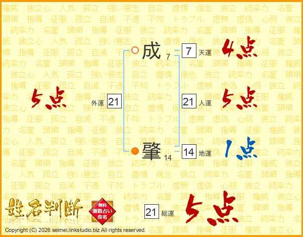 成肇さんの総運は21画の5点!