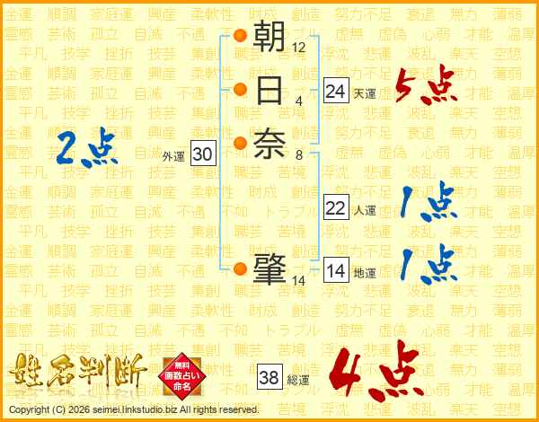 朝日奈肇さんの総運は38画の4点!