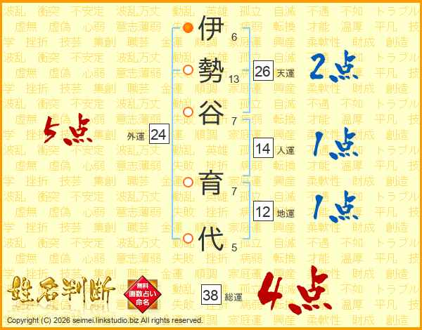 伊勢谷育代さんの総運は38画の4点!