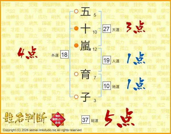 五十嵐育子さんの総運は37画の5点!