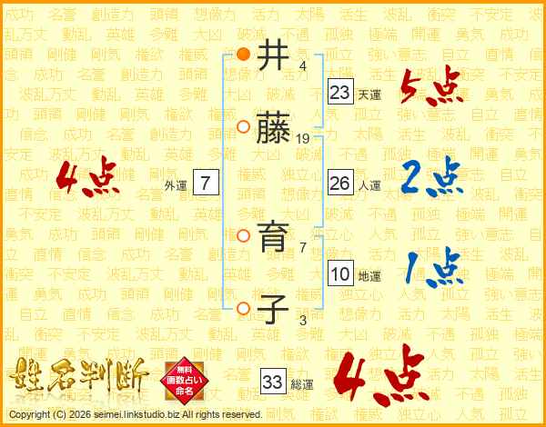 井藤育子さんの総運は33画の4点!