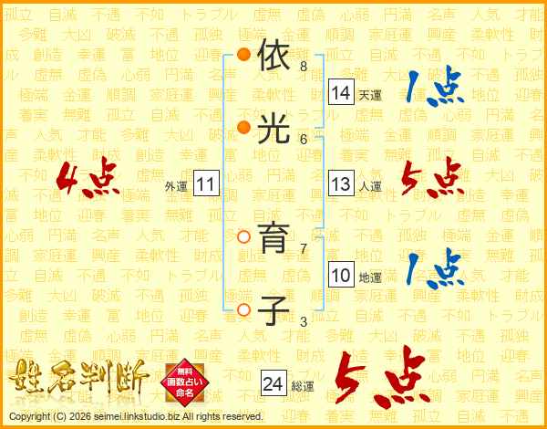 依(8画)光(6画) 育(7画)子(3画)