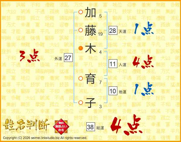 加藤木育子さんの総運は38画の4点!