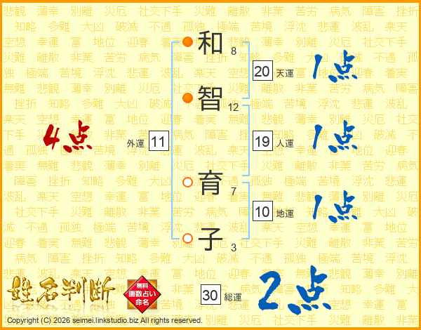 和智育子さんの総運は30画の2点!