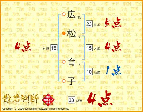 広松育子さんの総運は33画の4点!