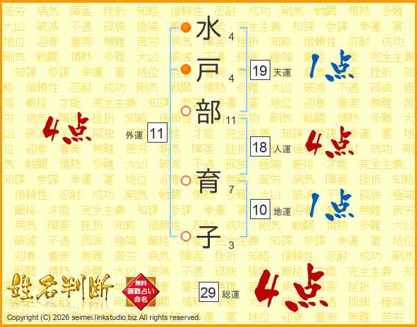 水戸部育子さんの総運は29画の4点!