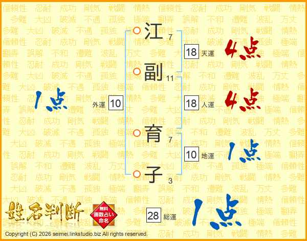 江副育子さんの天運は18画の4点!