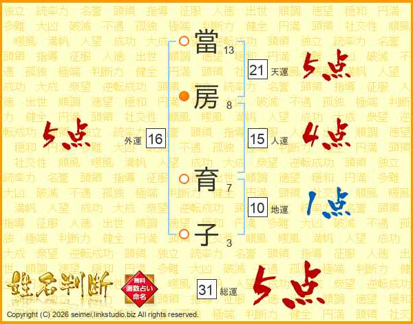 當房育子さんの総運は31画の5点!
