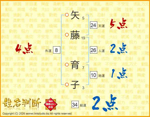 矢藤育子さんの総運は34画の2点!
