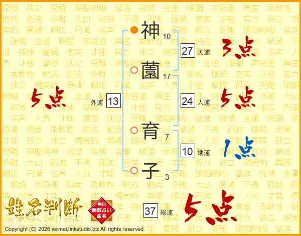 神薗育子さんの総運は37画の5点!