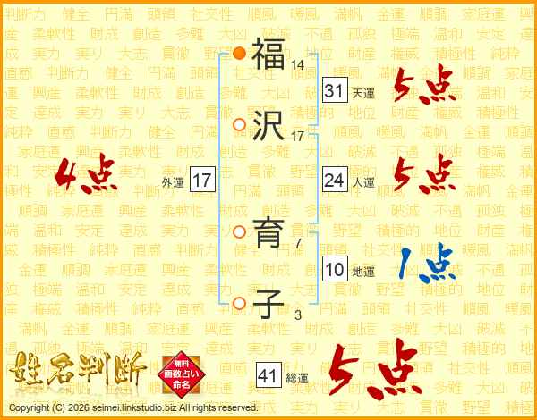福沢育子さんの外運は17画の4点!