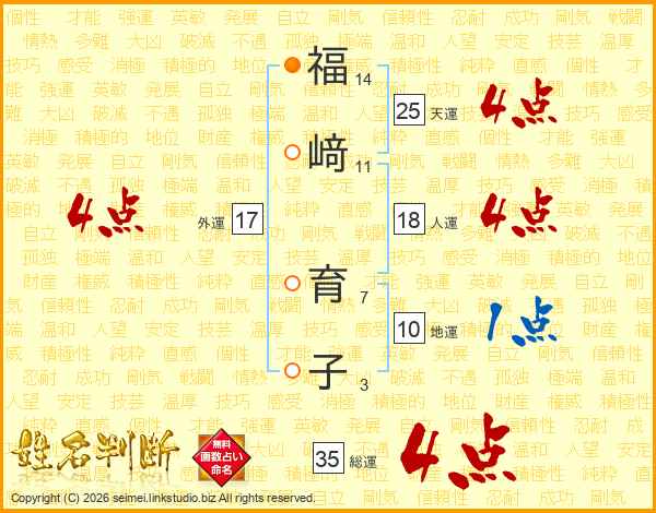 福(14画)﨑(11画) 育(7画)子(3画)