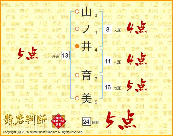 山ノ井育美さんの総運は24画の5点!