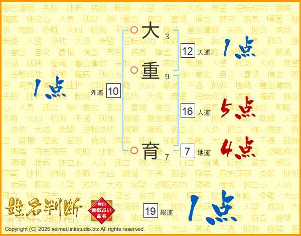 大重育さんの総運は19画の1点!