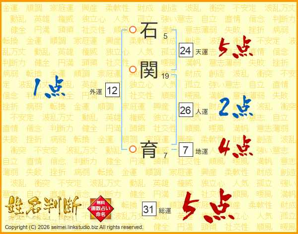 石関育さんの総運は31画の5点!