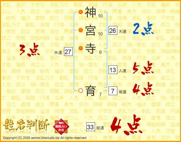 神宮寺育さんの総運は33画の4点!