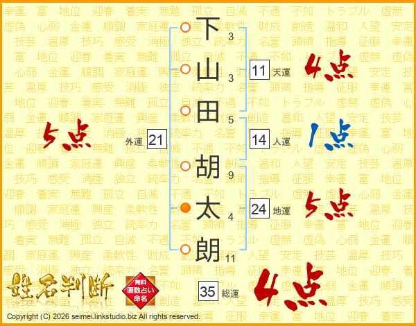 下山田胡太朗さんの総運は35画の4点!