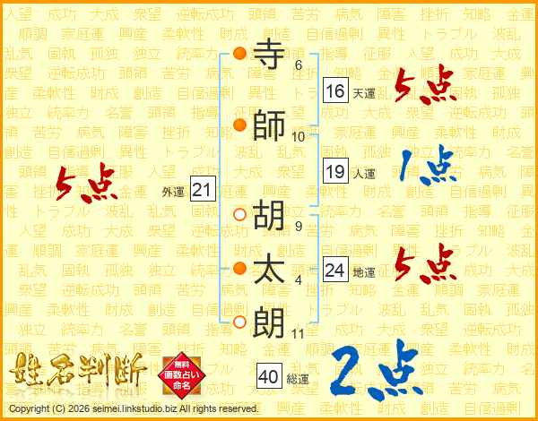 寺師胡太朗さんの外運は21画の5点!