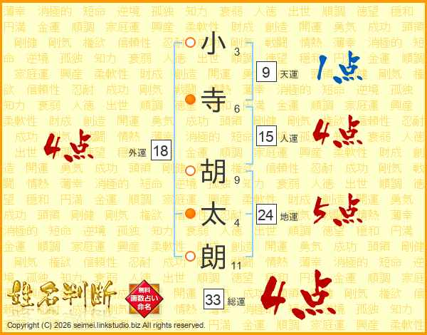 小寺胡太朗さんの総運は33画の4点!