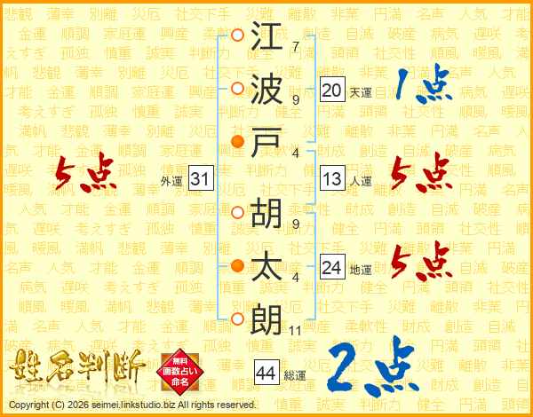 江波戸胡太朗さんの外運は31画の5点!