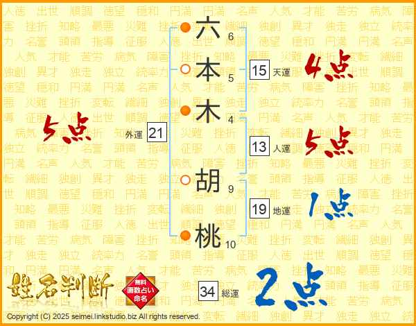 六本木胡桃さんの総運は34画の2点!