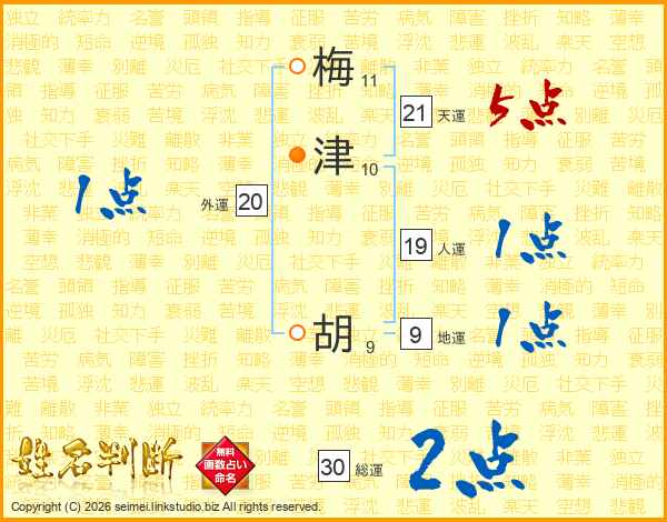 梅津胡さんの天運は21画の5点!