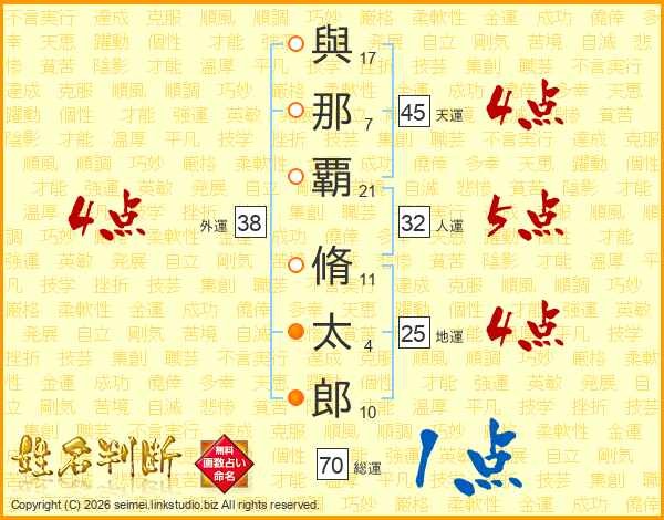 與那覇脩太郎さんの地運は25画の4点!