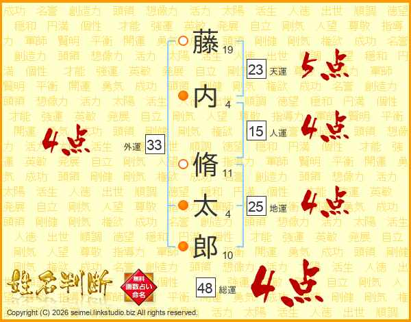 藤内脩太郎さんの総運は48画の4点!