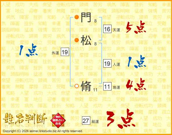 門松脩さんの総運は27画の3点!