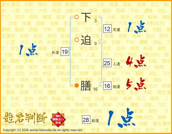 下迫膳さんの人運は25画の4点!