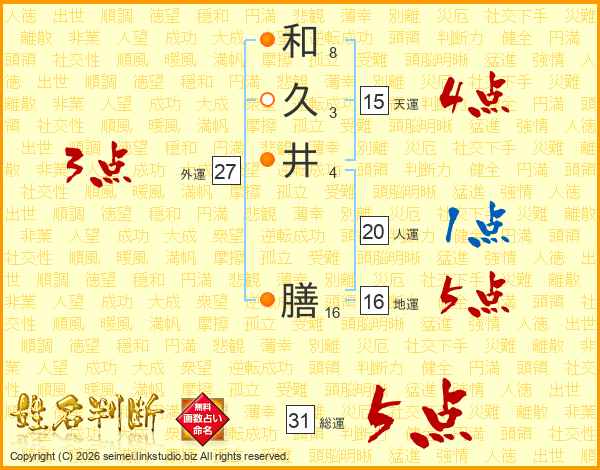 和久井膳さんの総運は31画の5点!