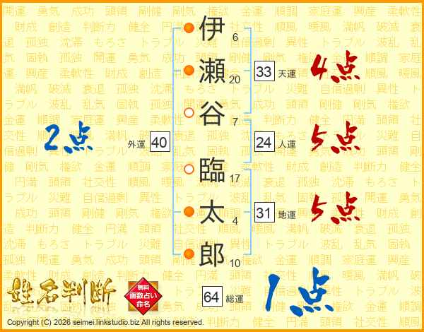 伊瀬谷臨太郎さんの総運は64画の1点!